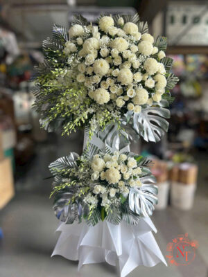 Các mẫu hoa chia buồn tại shop được thiết kế trang nhã, sử dụng các tone màu trắng, tím, xanh nhạt – thể hiện sự trân trọng và lời chia sẻ chân thành.