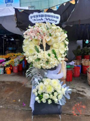 Các mẫu hoa vòng, kệ hoa tang lễ được thiết kế chuyên nghiệp, thể hiện lòng thành kính, chia sẻ nỗi buồn với gia quyến người mất.